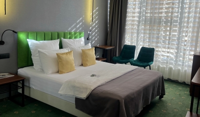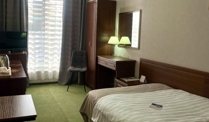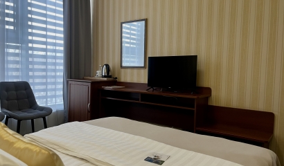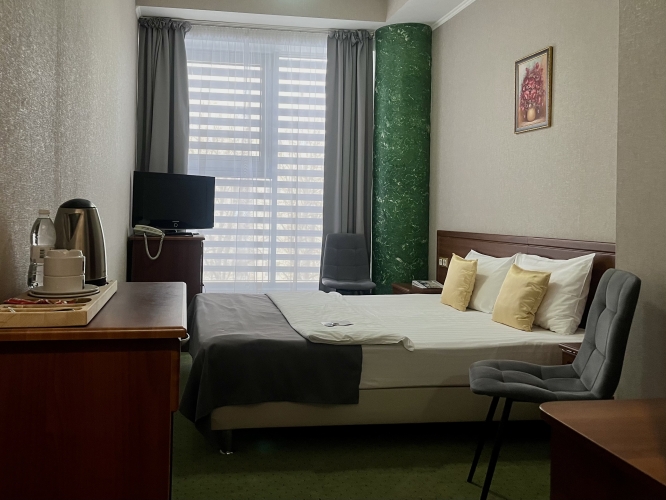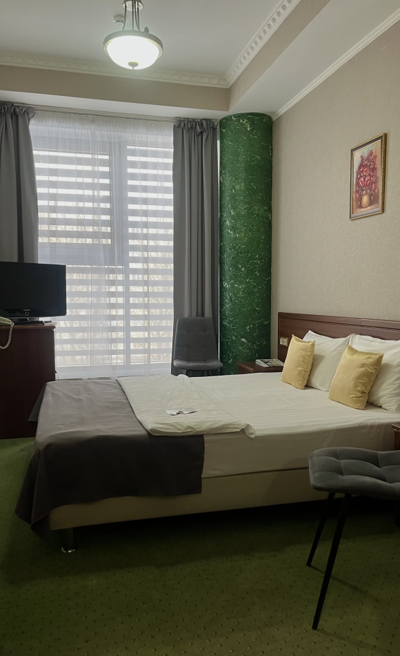 Этот уютный номер эконом-класса выполнен в классическом стиле и оформлен в нежных пастельных тонах, создающих атмосферу спокойствия и умиротворения. Здесь вы найдете двуспальную кровать и удобную мебель, которая обеспечит вам комфортный отдых после насыщенного дня.