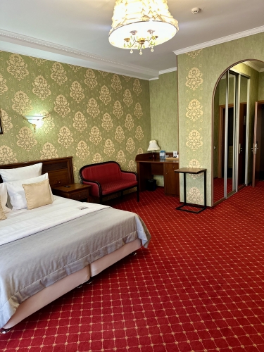 Номер категории «Сюит» — идеальное сочетание элегантности и уюта, созданное для тех, кто ценит истинный комфорт и изысканный стиль.